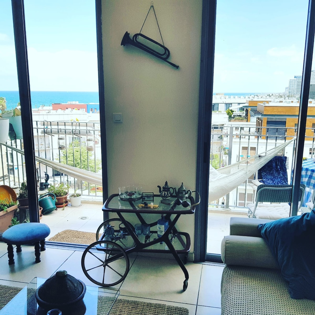 *We have a bomb shelter/mamad inside the apartment.* Enjoy a stylish experience at the heart of the Flea Market. Great vibe from a brand new 2-bedroom Mini-Penthouse with a HUGE terrace, BBQ grill and all the spoils you'll need to indulge. Our mini penthouse is bright and airy and is perfectly based to explore Tel-Aviv and Yafo. Quiet and cozy. Five minute walk to the beach, surrounded with historical old Jaffa and the best galleries, museums, shops, cafe's, restaurants and bars.