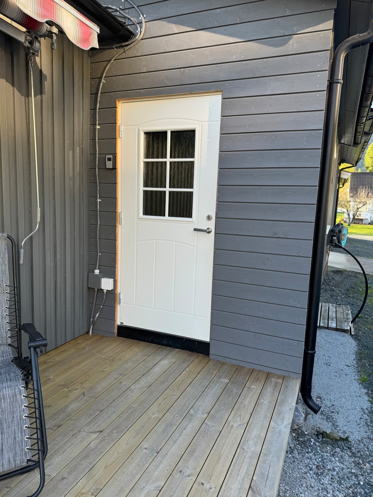 Litet, enkelt innredet hus med ett soverom (2 enkeltsenger, 1 sovesofa 140 cm), rom med tekjøkken (ikke kjøkkenvifte så steking må unngås), spiseplass, baderom med dusjkabinett og gulvvarme. Varmepumpe som både kan varme og kjøle rommene. Rolig boligstrøk nær sentrum. Det er greit å vite at fra klokken 9 er høner og hane ute i sin luftegård. Sengetøy og håndklær finnes og kjøkkenet har vannkoker, kjøleskap, komfyrtopp, mikrobølgeovn. Vi står for renholdet etter ditt opphold.