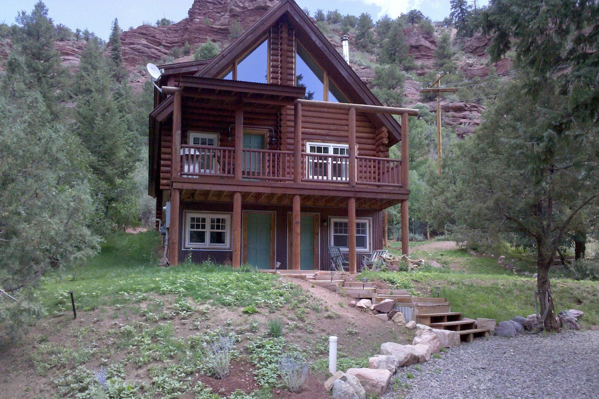 Beautiful 8000 foot elevation mountain side log cabin with amazing views. Large wrap around deck give plenty of living options both inside and out. The quality and craftsmanship of the log cabin is unsurpassed anywhere in the Ouray Colorado area. Open concept with large loft sleeps 6. Beautifully decorated with new furniture. Peaceful , relaxing setting to enjoy unbelievable views and abundant wildlife. Completely furnished to make your stay comfortable and memorable.