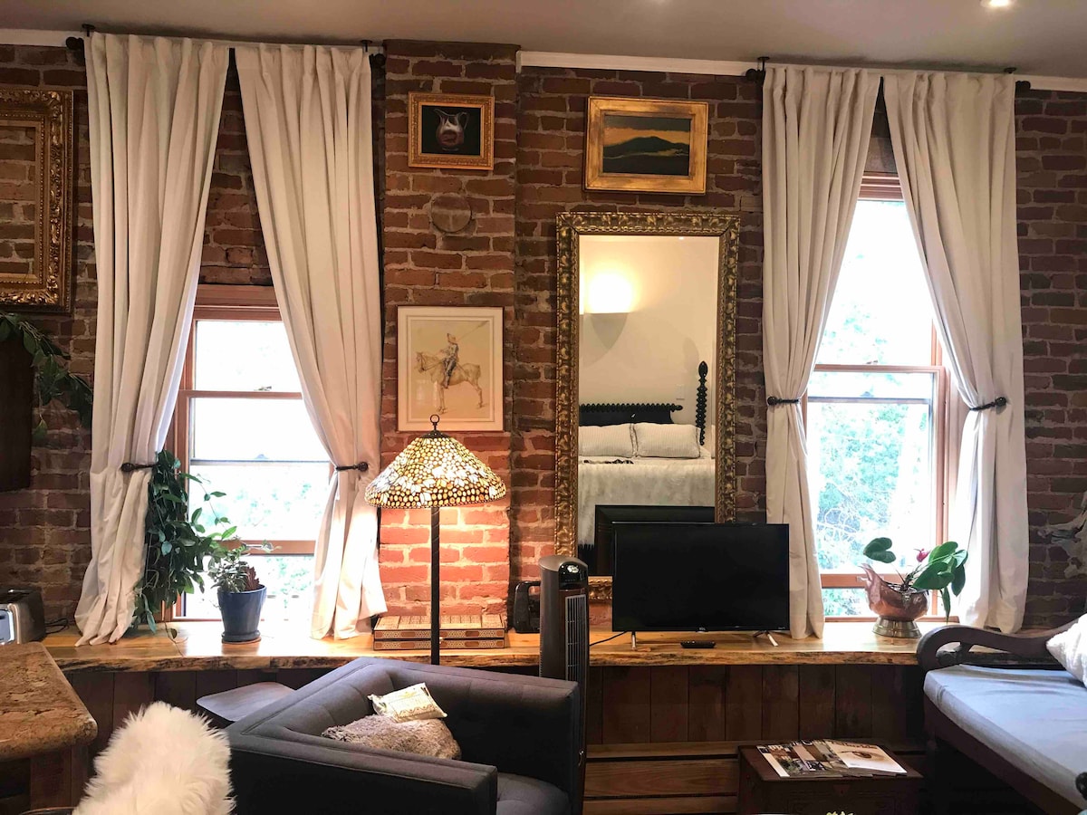 Welcome to the newly renovated SQRL nest. Our cozy retreat is the perfect place to relax and enjoy the breathtaking surroundings. Beautifully designed, modern space with a 9' window with a view of the mountain, a queen bed and twin sleeper couch. Our kitchenette is equipped with a mini-fridge, beverage fridge, 3-n-1-microwave, convection oven, air-fryer, and coffee maker. Perfect for preparing quick meals or enjoying a snack. The spa bathroom provides plush towels, robes, and luxury amenities.