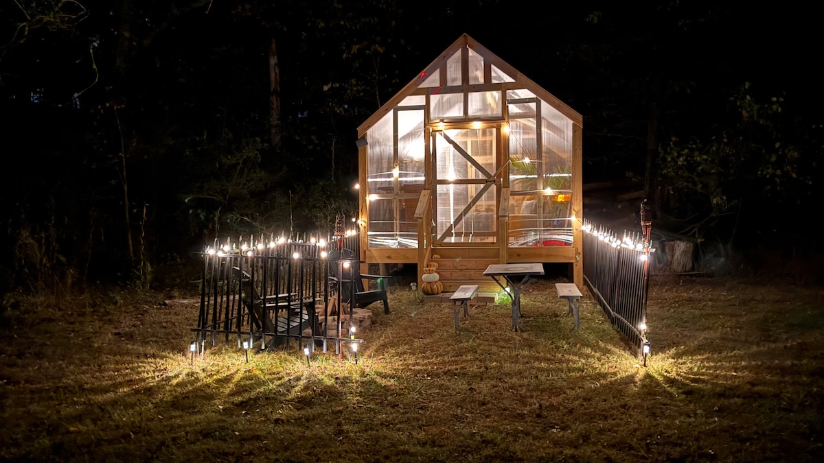 Escape the hustle and reconnect with nature in this one-of-a-kind Luxury Glamping Cabin experience! Nestled in a quiet woodland setting, our handcrafted cabin blends rustic charm with modern comfort—perfect for couples, solo travelers, creatives, or anyone craving a peaceful getaway. Step into your private retreat, featuring a King-sized bed layered in plush linens, cozy knit blankets, and soft pillows—ideal for restful nights after long days of adventure or relaxation.