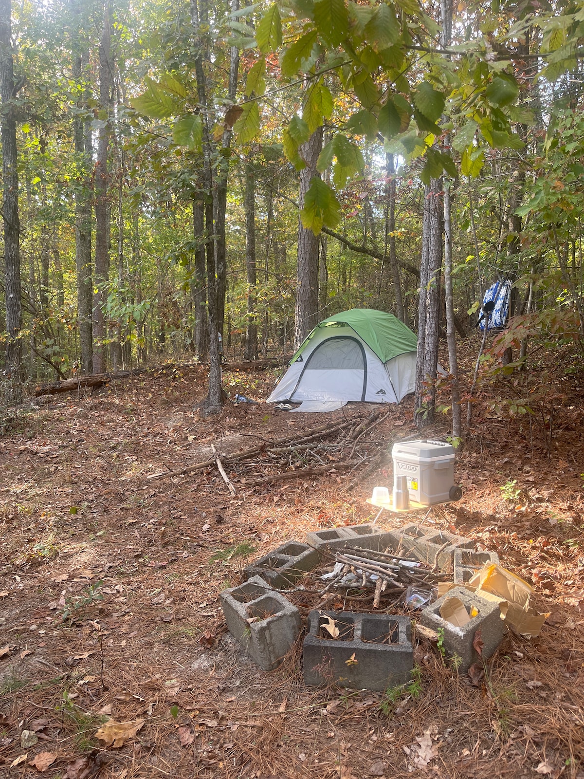 Very spacious site situated on 1.6 acres of unique campground accommodations. This 320 sq. ft. waterproof duck canvas bell tent is built for the ultimate glamping retreat in mind. The site is fully equipped with a private outdoor bathroom and hot shower, fire pit, gas grill and picnic table. The interior has WiFi, adequate climate control, mini refrigerator/freezer, all necessary cooking supplies, utensils, dinnerware, and a Keurig coffee maker. Trust us, your camping supplies are covered…
