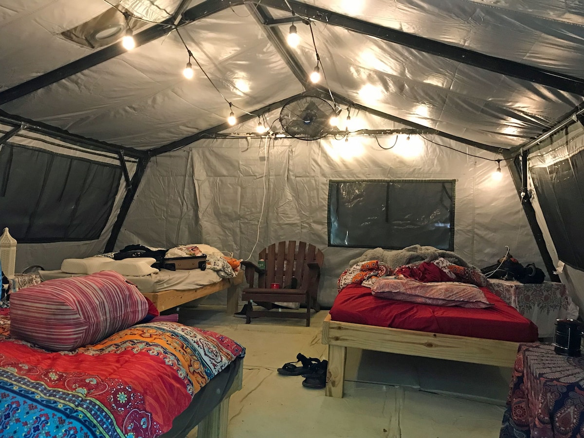 豪华露营天堂(全功能卫生间、厨房和空调)
