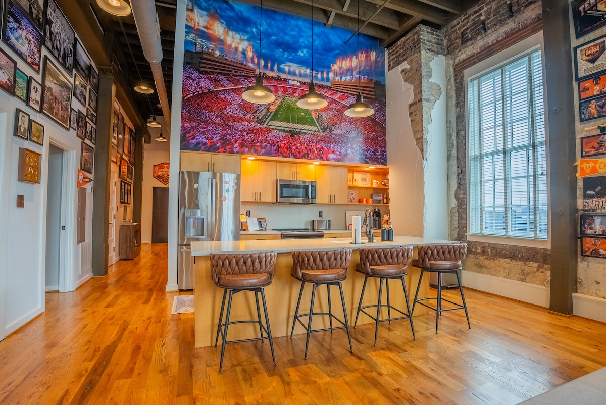 This modern and spacious loft located on Historic Market Square in the heart of Downtown Knoxville is close to shops and restaurants. The loft has a fully equipped kitchen. Great for all occasions whether it be a relaxing family vacation, a mid-week business visit, or just a weekend out. It is also a perfect space for football fans with a convenient free trolley going to and from UT campus. We look forward to hosting you in this loft with century old charm and a modern flare.