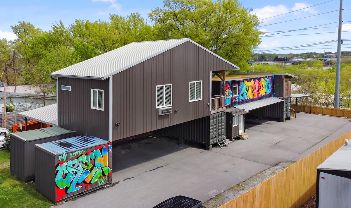 Stay in Knoxville’s only overnight shipping container rental, just 1 mile from Johnson University! This 40-foot converted container offers modern comforts: a queen-size bed, sofa bed, full bathroom, kitchenette with butcher block countertops, microwave, fridge, and free Wi-Fi. Relax on the 40-foot covered patio with seating, a Blackstone grill, and an indoor/outdoor bar. Enjoy the firepit (wood included!) and gathering space. Perfect for university guests, events, or a unique getaway!