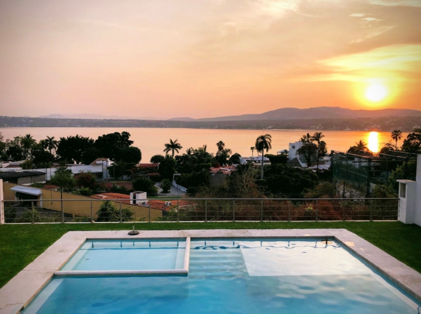 Hermosa casa de 2 plantas, con una altura privilegiada en su terreno que con sus amplios ventanales brinda vistas incomparables del lago de Tequesquitengo. Garage para 4 autos. Casa con alberca , Caldera (opcional),con costo extra,rodeada de jardines, zona de asador, cuenta con bocina con bluetooth. Television con Sky y Netflix así como Wifi en toda las areas. A pie de lago encontraras un Club de Playa casi frente a nosotros, donde podrás rentar deportes acuáticos. Jardines de Mexico a 10 min.