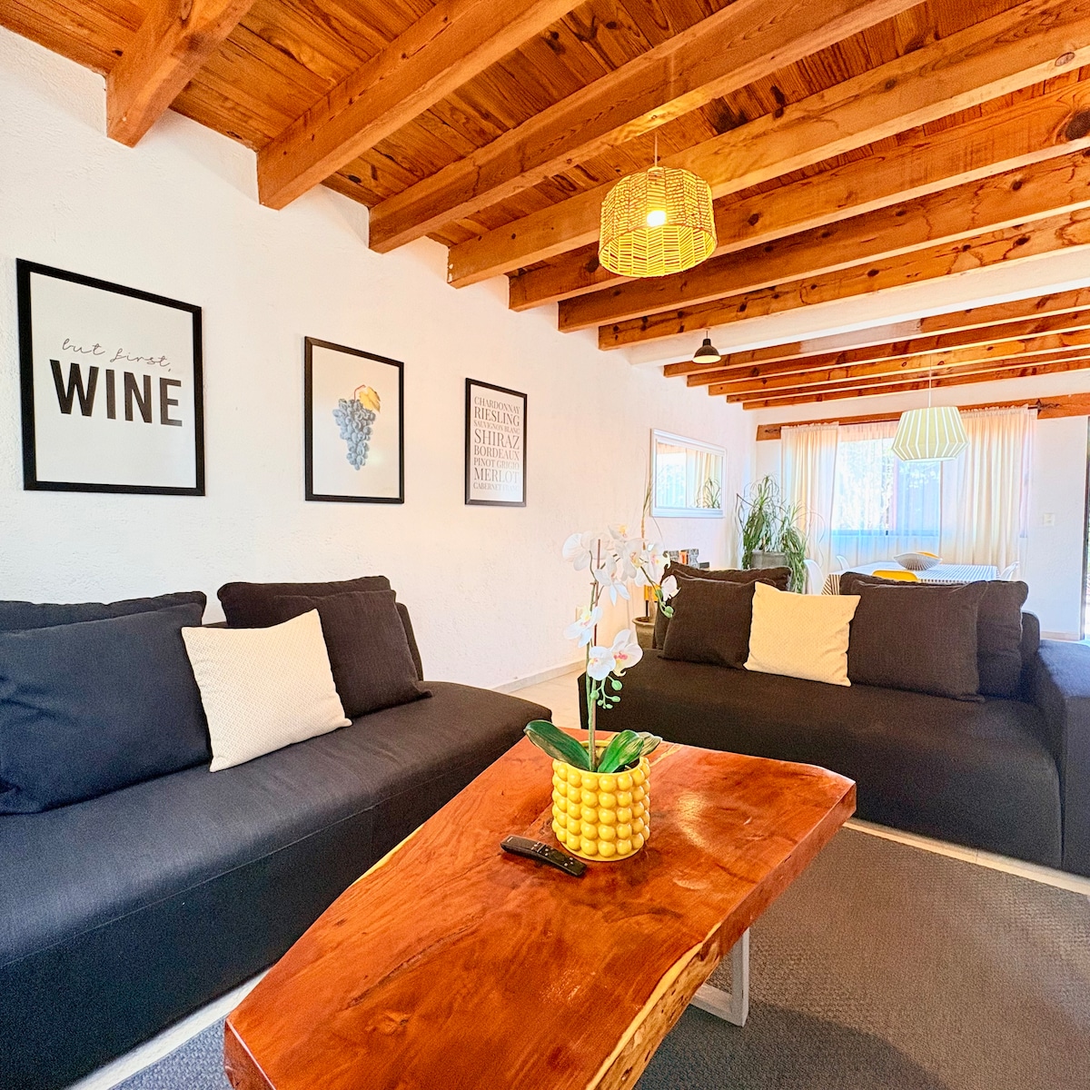 Relájate en este espacio tan tranquilo y elegante, lleno de vida con su hermoso jardín, su relajante jacuzzi, la espectacular televisión de 75 pulgadas en la sala, para ver tus películas y series favoritas. Además está muy bien ubicado para disfrutar de Tequisquiapan y sus alrededores plenamente, como sus queserías, viñedos, globo aerostático, cuatrimotos, caballos, restaurantes, bares y recorridos. No dejes de visitar la Peña de Bernal, las minas de ópalo, etc.