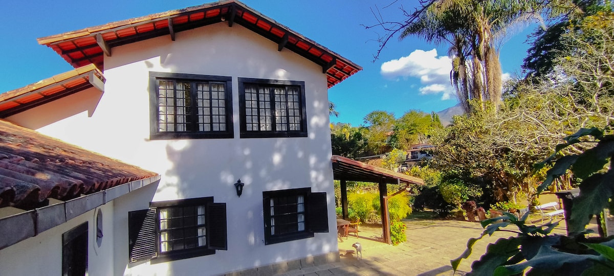 Casa de campo com 6 chalés. São 11 quartos confortáveis que acomodam até 22 pessoas. Mais há opção de se adicionar uma casa próxima na beira do lago com 2 quartos para mais 4 pessoas. Solicite o link desta casa. Piscina, sauna, churrasqueira, cozinha toda equipada, sala de TV, home office. A 30 minutos de Itaipava e 2,30 min do Rio. Todo acesso por asfalto. Internet fibra ótica e Starlink Todo espaço fica exclusivo para quem aluga,