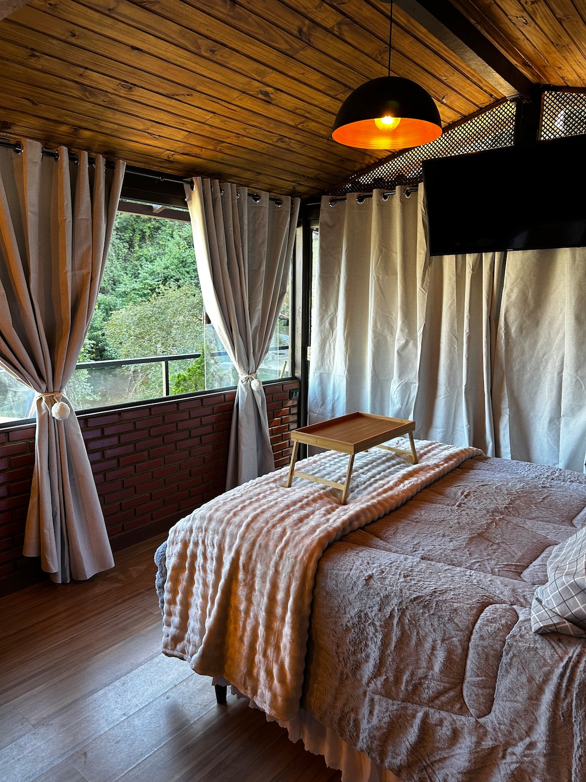 Quer paz e sossego? Este é o lugar certo! Seja muito bem vindo! Hospede-se cercado pela natureza em um chalé aconchegante equipado com o essencial para sua estadia. O chalé e toda a sua área ficam restritos ao hóspede e seus acompanhantes, não é nada compartilhado. Temos 1 cama de casal, 1 de solteiro e 1 bicama além de colchões extra e 5 travesseiros.