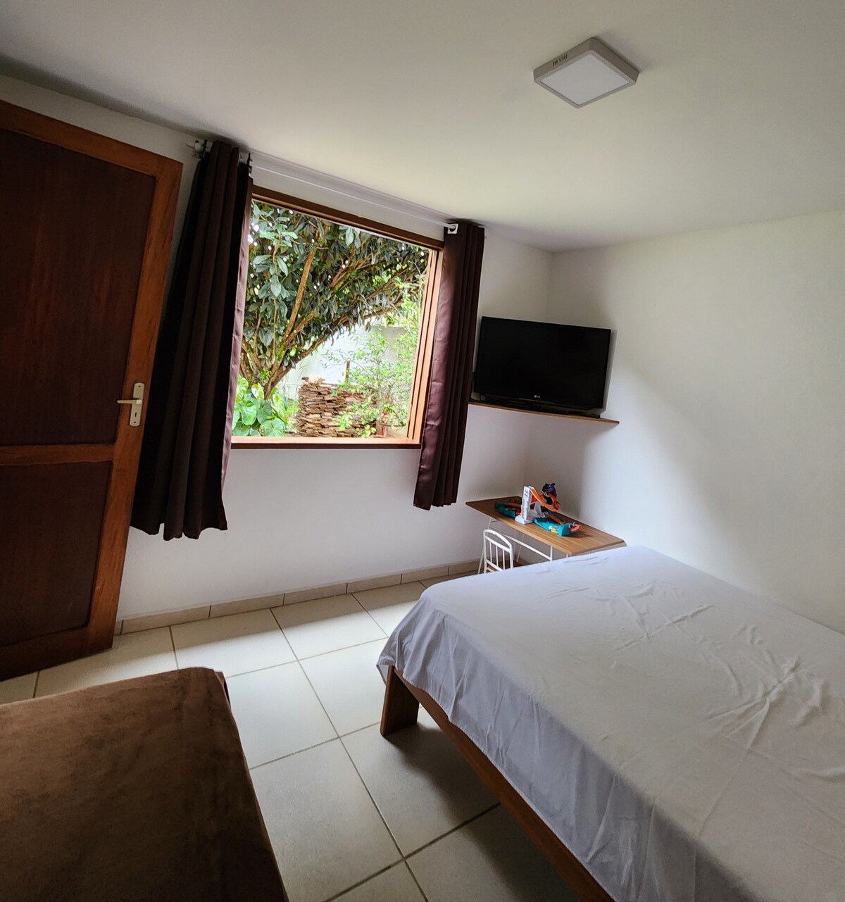 Casa em condomínio fechado, acesso todo asfaltado. Aproveite a paisagem encantadora deste lugar romântico em meio à natureza. Desconecte-se de tudo ao ficar sob as estrelas. As conversas e aconchego em torno da roda de fogo..Pássaros que brilham ao Sol. E o silêncio para imersão diurna e noturna que oferece um profundo relax. Ideal para o seu home office, desenvolvimento de TCC, Mestrado ou Doutorado. Casa toda telada para evitar a perturbação dos insetos indesejáveis. Wi-Fi, IPTV, ar cond.