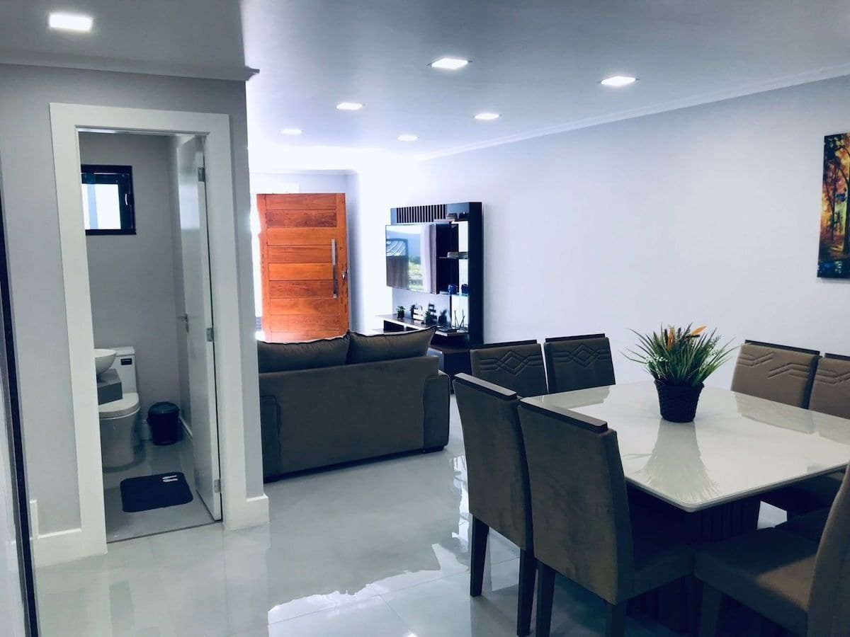 Casa contemporânea novíssima em condomínio fechado em Albuquerque (Região do Green Valley, no Km 4 da Terê-Fri). Os 3 quartos possuem ar condicionado e TV smart. Local tranquilo, seguro, bastante ensolarado e junto à natureza, porém a poucos minutos de carro do Centro (apenas 10km). Piscina privativa com possibilidade de aquecimento (cobrado à parte). O aquecimento deve ser solicitado até 72 horas antes do início da estadia e tem o custo de R$ 200 do pré-aquecimento mais R$ 100 por diária.