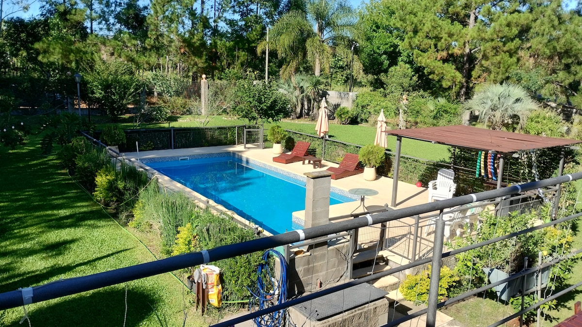 Relájate con la familia en este alojamiento donde la tranquilidad se respira. Disfruta de los días al sol y las noches bajo las estrellas. Renova la energía escuchando el canto de las aves autóctonas . A 10 min de las termas y 15 min del centro en auto. Dispone de quincho c/parrilla, pileta, espacio con reposeras al aire libre. Una cabaña equipada con DTV , WFI, aire acondicionado/calefacción. Baño, cocina, heladera, calefón a gas. La cabaña está ubicada a 20 mts de la casa familiar.