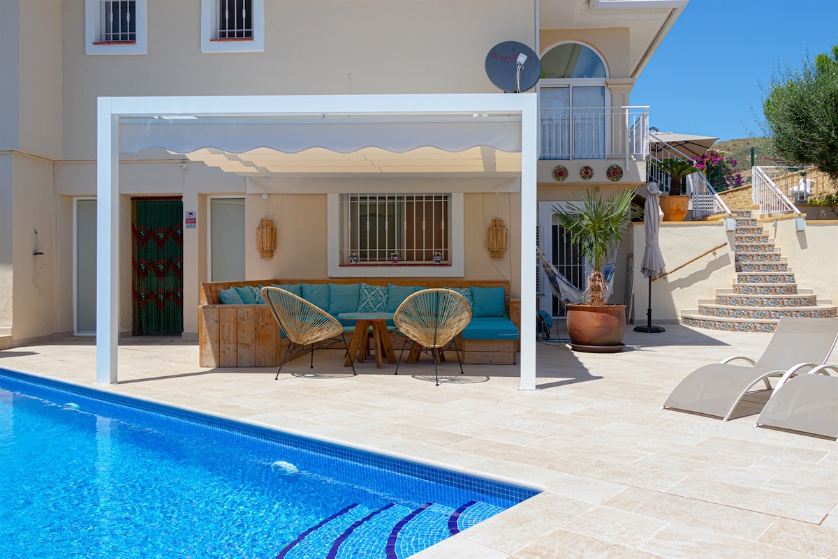 Camí de la Cantera 111, renovated 60’s Villa brought up to modern standards while retaining its original style. Enjoy the views over the Algar valley, the private pool or its many different spaces in and out. 1km away from all amenities and beach 500m away from Sierra Helada Natural Park with many trekking routes. 3 Bedrooms and 2 Bathrooms, pool, two living rooms, several terraces and lavish garden. AC in all bedrooms, living and dinning room. House 219 m2 Plot 650 m2 We speak En, Fr and Sp.