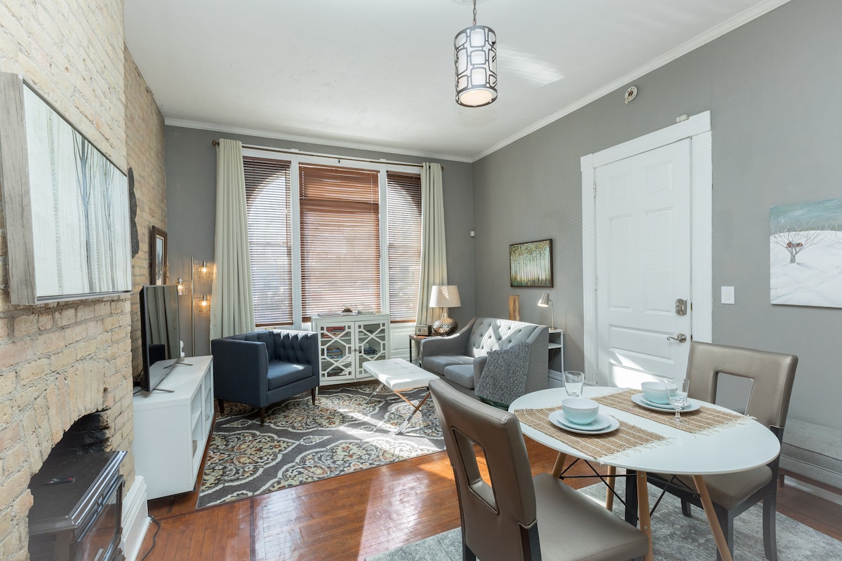古怪的1卧室公寓、壁炉、独立入口、洗衣房