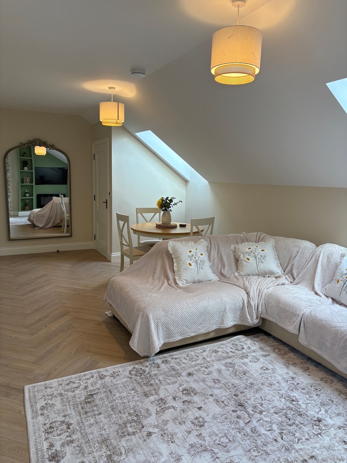 Burnside sits on the edge of a working farm in the Braid Valley. Looking across to splendid views of Slemish mountain, it is 30 mins from Belfast and 4k from the award winning village of Broughshane. The surrounding countryside is perfect for cycling or walking. Renowned golf courses Galgorm Castle & Royal Portrush are nearby. Burnside is an ideal location for discovering the Antrim Glens and Causeway Coast. Local hotels include Galgorm Luxury Resort & Spa and Raceview Mill Wooltower.