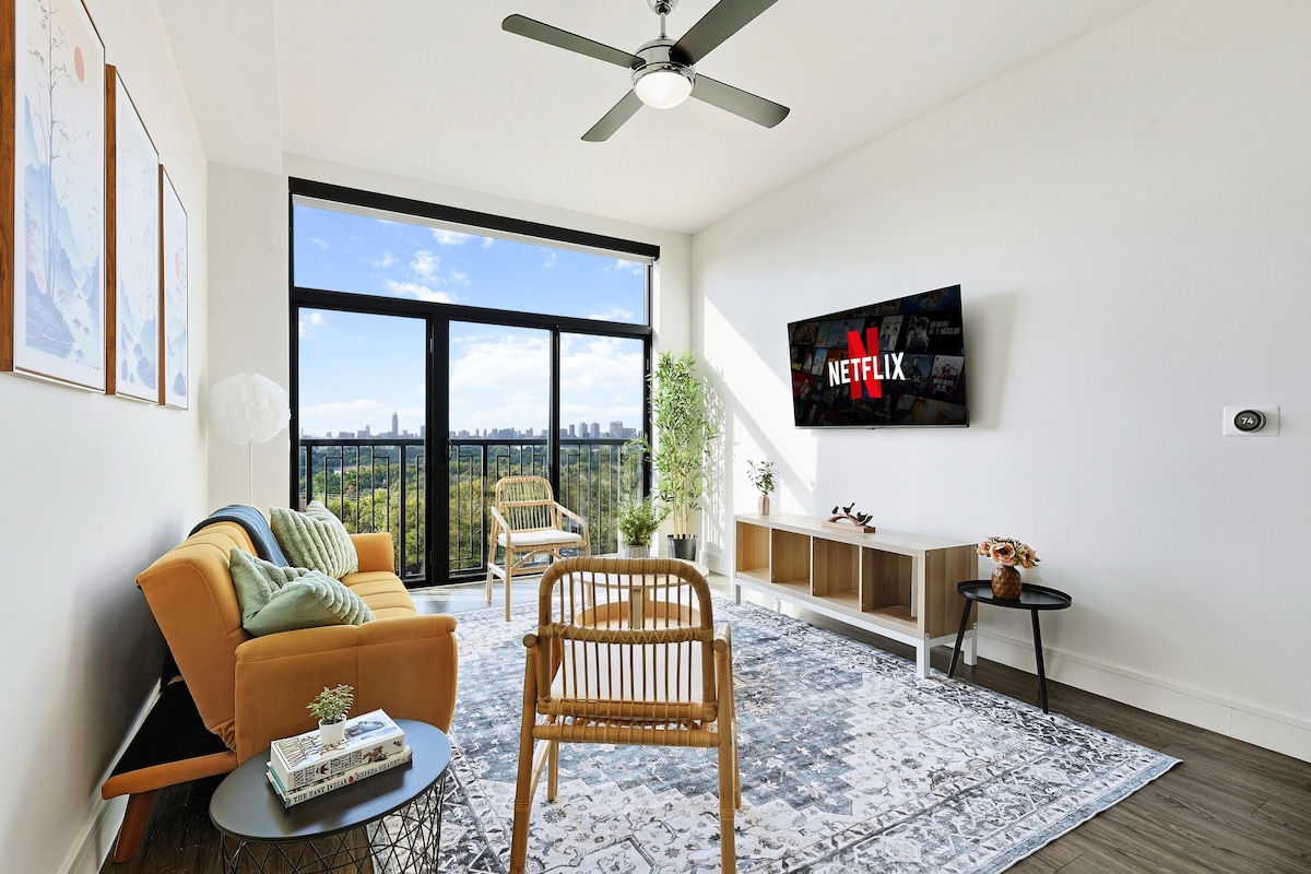 Relax in this super vibey, plant-filled studio with a private downtown view balcony and access to a 24/7 rooftop pool. Guests rave about the calming energy, greenery, décor, and peaceful atmosphere, perfect for unwinding or working. Centrally located and safe, this dog-friendly quiet retreat also features high-speed Wi-Fi and is ideal for solo travelers, couples, or business. With a host who goes above and beyond, experience the peaceful energy that makes this space unforgettable. Book now!