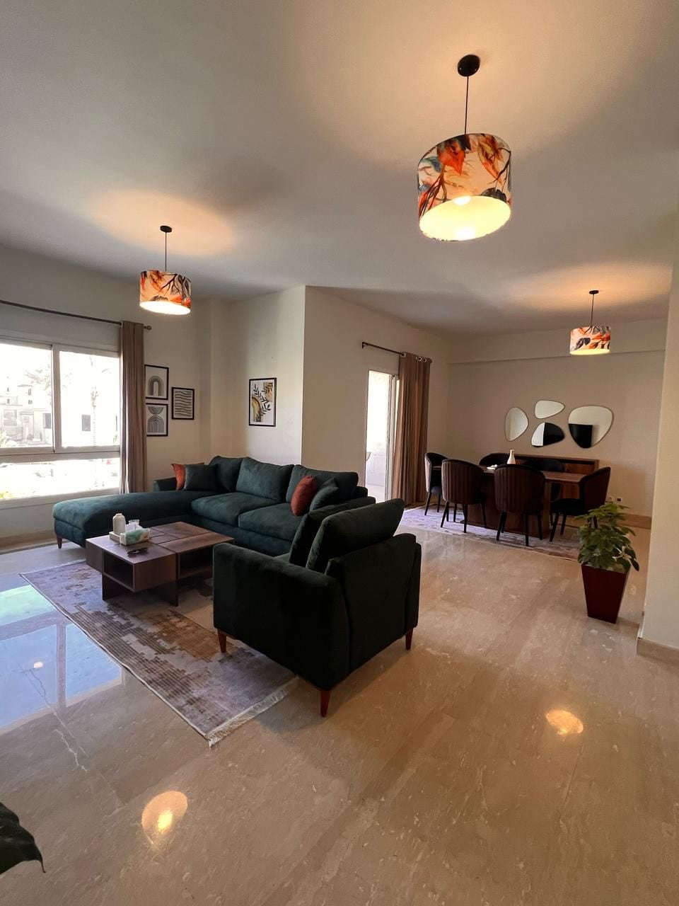 Stay 10 Nights & Enjoy a Free Felucca Nile Ride! Uptown Cairo city center, perfect for business or leisure. Our newly refurbished property boasts a bright, cozy layout with large windows and stunning golf & city views. Inside, a comfy living & dining area, a modern kitchen with high-end appliances, elegant bedrooms with en-suite bathrooms, and a versatile study/office. Just steps away, get free access to a gym, swimming pool, jacuzzi, lounge, and children's playground.