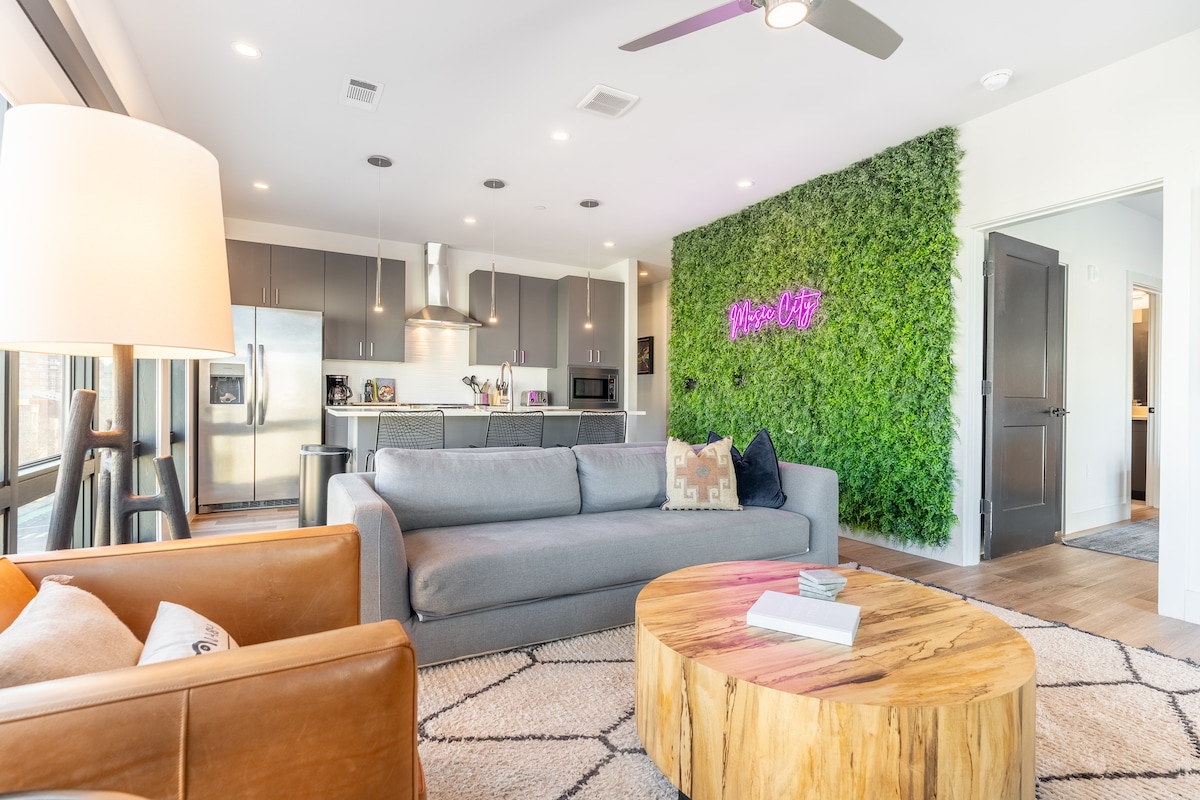 Designer luxury condo blending elevated country-core style with a refined Music City aesthetic. Thoughtfully designed in our signature Honky-Tonk style, this 2BR/2BA retreat is ideal for couples, families, friends, or business travel, offering standout interiors, a private balcony, and access to premium on-site amenities including a pool, gym, business center, free parking, and on-site dining.