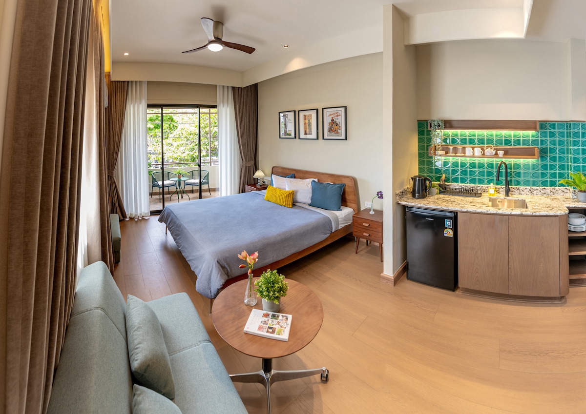 Nila Apartment402 is newly renovated and suitable for family or group of friends up to 4 members. The room is spacious and come with 50" smart TV with NETFLIX and Disney+ for guests to enjoy after a long day. The rain shower, bathtub and bathroom are seperated to easily accomodated 4 guests. There are small pantry with microwave and coffee machine provided in the room. Electric Stove and utensiles can be requested.
