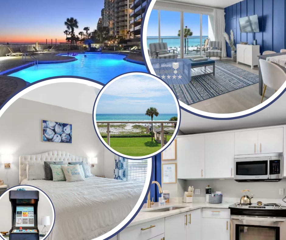 Welcome to Destin Bleu! 🏖️BEACHFRONT at Sterling Sands (low rise condo) 🏖️MIN AGE 25 person renting- Req by HOA 🏖️Sleeps 4 plus baby (HOA Strict fire code) 🏖️King bed in master 🏖️PRIVATE beach access 🏖️Heated Pool&Gym 🏖️Modern Interior 🏖️Private Arcade! 🚫NO PETS of ANY KIND or SMOKING 🏖️Kids toys, booster seat & pack n play 🏖️2 Elevators 🏖️2 Beach Chairs available inside condo -->Visit STAYHERERENTALS to view all rates/properties.