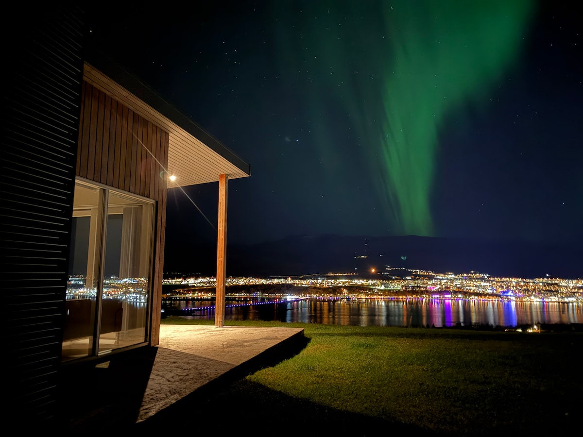 This modern and privately owned 106 m2 luxury cottage is located right above Akureyri and has gorgeous views over town and the surrounding nature. The house comes with a fully equipped kitchen, flatscreen TV and Wifi, entertainment system/board games and a cozy indoor hot tub to relax in after a long day.