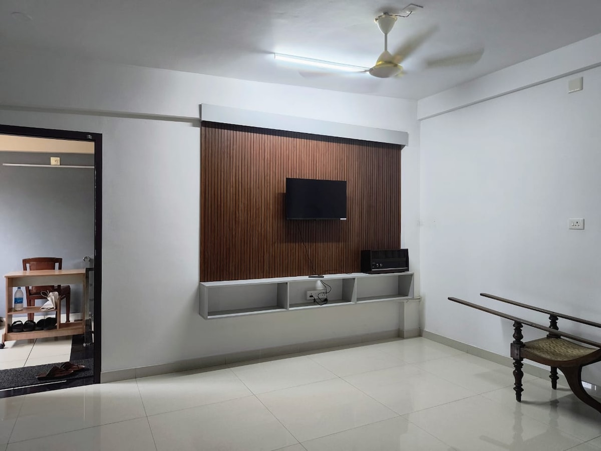 Welcome to your private 2BHK home in Trivandrum! This apartment is designed for comfort—perfect for both business and leisure travelers with AC bedrooms. Enjoy stylish interiors and all the essentials: high-speed Wi-Fi, TV, a reasonably well-equipped kitchen with microwave and refrigerator, washing machine, iron, and fresh linens and towels. What you see in the photos is exactly what you get—no surprises, just a clean and cozy space that feels like home. Great accessibility to all destinations.
