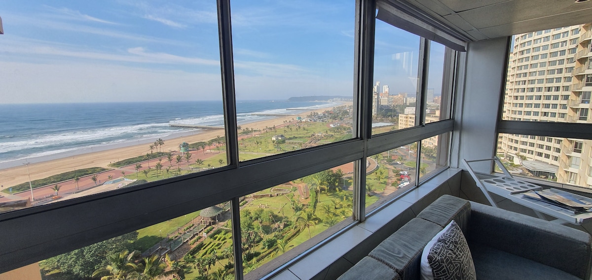 Spectacular! Beachfront!m beauty! - free WiFi - fully serviced - DSTV - air conditioned MAGICAL property offers modern pizzazz, central with all the hotel like amenities Concierge to welcome you, Modern open plan living leads to an entertainment patio. 3 magnificent bedrooms, all with SUPERB sea views. Direct beach access, directly located on promenade . - Dedicated workspace in foyer Allocated covered parking, trailer parking. Feel and hear the ocean throughout