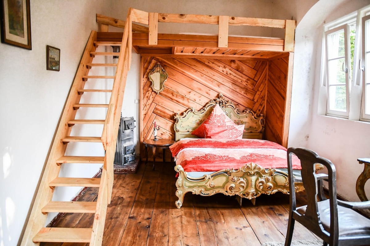 Charmante Mansarden-Whg. mit einzigartiger und familiärer Atmosphäre. Dem ursprünglichen airbnb Konzept folgend, vermieten wir unsere Whg., die sich über das komplette OG im Neugotischem Schloss von 1863 erstreckt. Die Whg. wird zeitweise auch privat genutzt. Der große Werrasaal mit seinem beeindruckenden Blick lädt zu gemütlichen Abenden am großen Esstisch oder Kamin ein. Die 2 Kinderzimmer bieten genügend Raum für Kinder. Spielzeug, Puzzle, CD-Player u. Bücher zahlreich vorhanden.