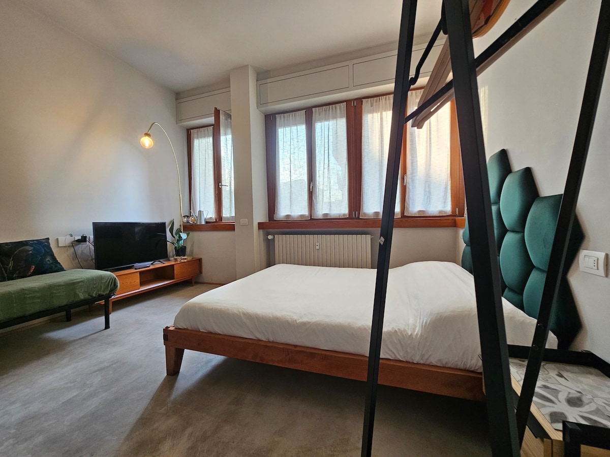 A stylish, bright loft ideal for travelling people, professionals/remote workers and leisure guests alike. 60 sqm with exposed beams and private terrace. Very fast Wi-Fi 1 Gbps fiber, large table desk, comfortable workspace, AC and modern comforts. Situated in a trendy, cosmopolitan area, full of Art Nouveau architecture, independent cafés, design bars, and international restaurants. Just a few minutes walk from Corso Buenos Aires, one of the longest shopping streets in Europe.