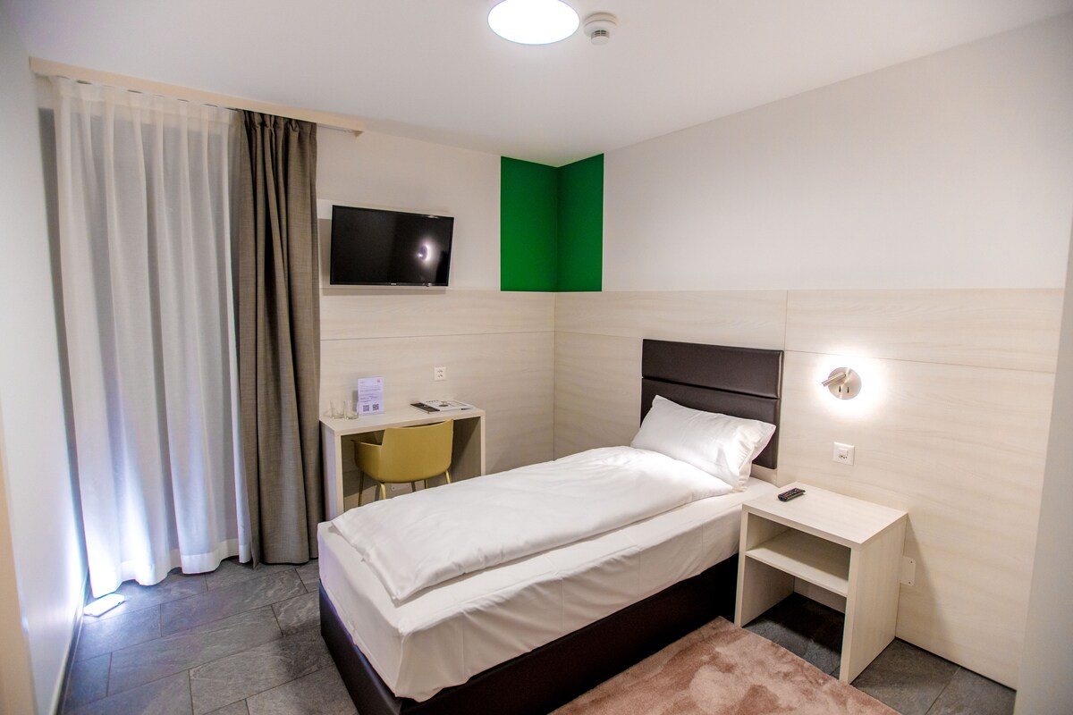 Le camere doppie letto Queen, si trovano nella nostra nuova ala dell'albergo costruita nel 2014. La vista è limitata e si trovano sul lato opposto alla stazione. Sono ideali per persone alla ricerca di un alloggio confortevole ad un prezzo interessante.