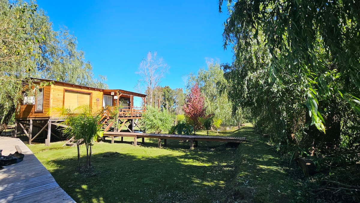 CASA DE ALQUILER de Hasta 4 personas Situada en un amplio parque de 1600m2 con MUELLE PROPIO. A 25 min en lancha taxi o 1hs en lancha colectiva desde la terminal fluvial de Tigre. La casa está equipada para brindarte el confort de un hogar en medio de la isla. Hay Wifi, Smart TV ( Netflix. Youtube) Aire acondicionado frío/calor, ventilador. Cocina completa. Sofá cama 2 plazas No hay toallas ni sabanas Amplio deck techado de 24m2 con living exterior, canoa , reposeras, hamaca y parrilla