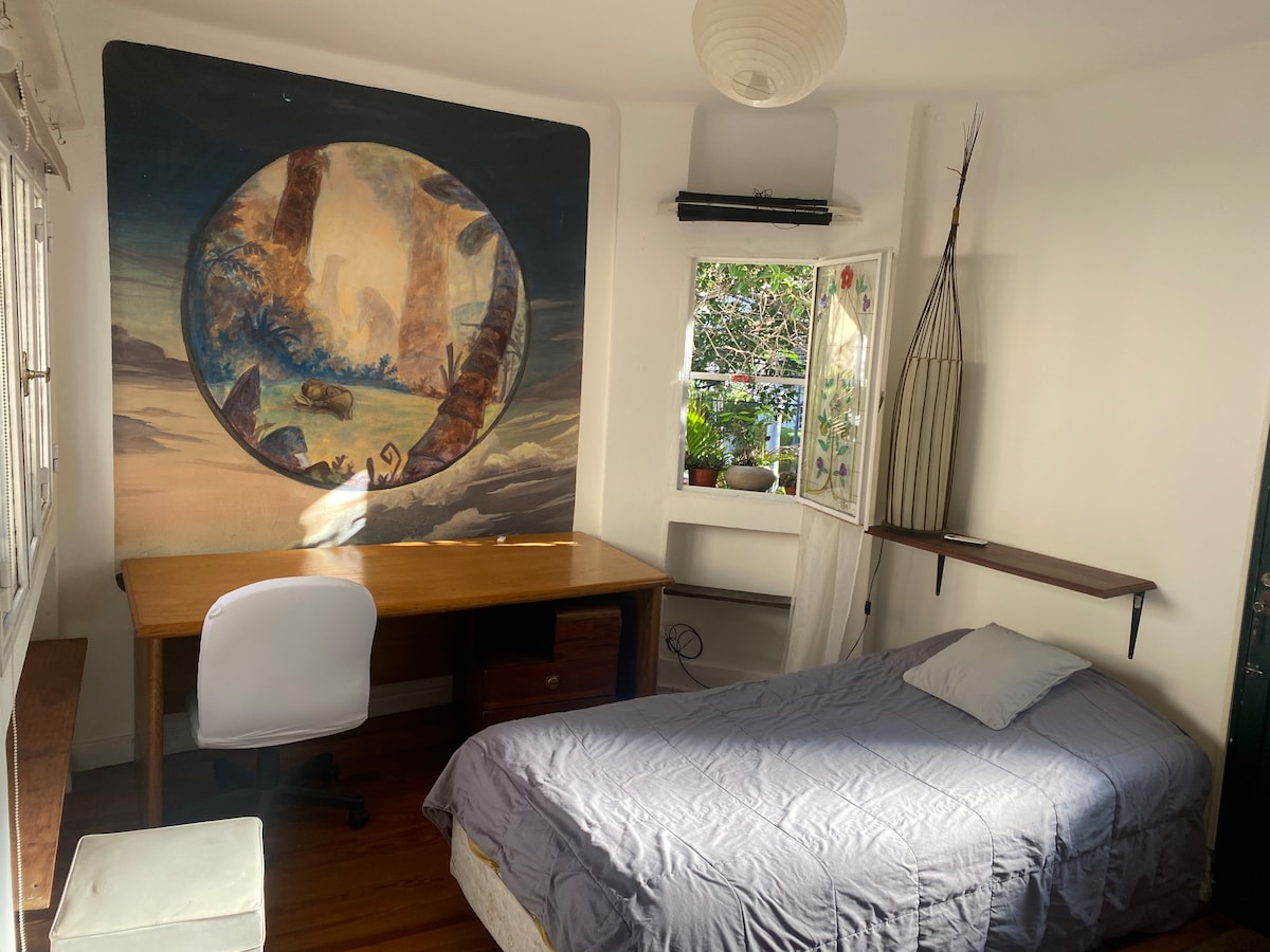 Relájate en este alojamiento único y tranquilo. Se encuentra ubicada en uno de los barrios mas lindos, seguros, tranquilos, del corredor Norte de Bs As, rodeado de verde y aire de rio. Ideal estudiantes Universidad de San Andrés, fans de Lollapalooza o para cualquier persona que quiera conocer esta parte hermosa de la ciudad. Es una casa privada adentro de una casa mayor, donde reside la propietaria.