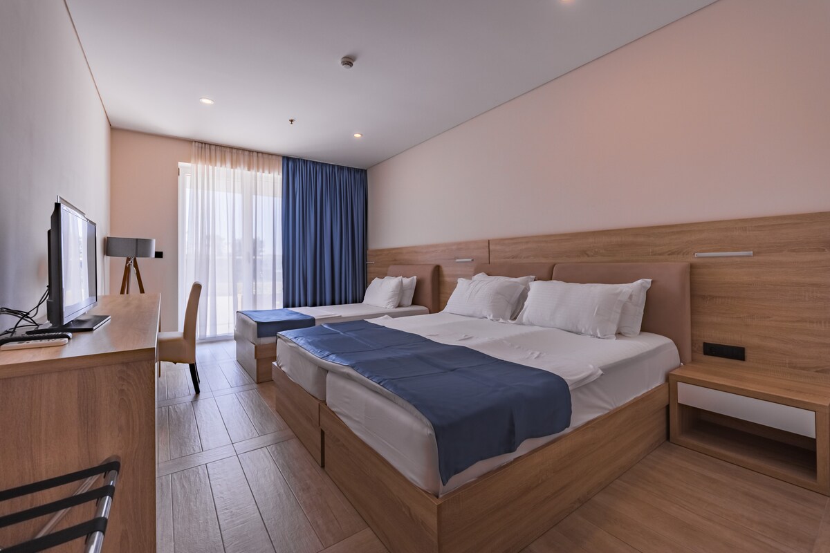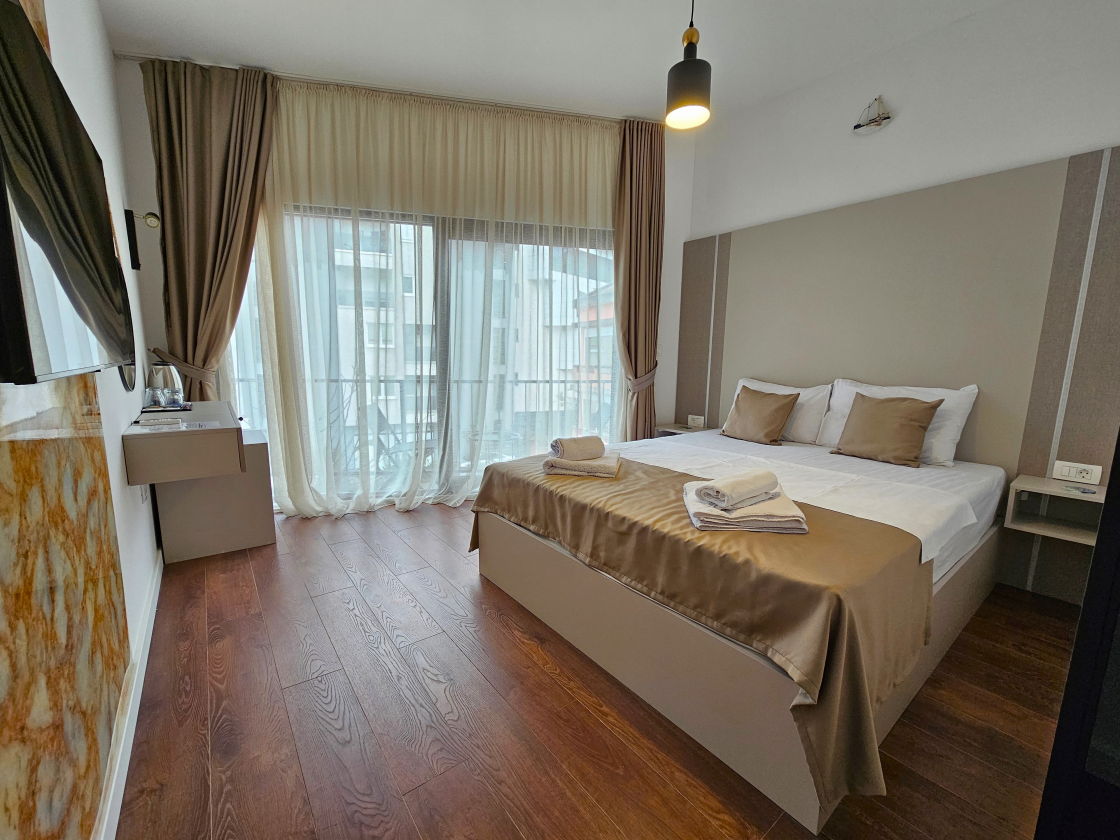 Brand new luxury apartments located by the beach, featuring two rooftop terraces with jacuzzis.Our guests are entitled to use the jacuzzi with additional surcharge, but reservation ahead of time is needed as we need a few hours to change the water and clean the jacuzzi. Guests have a 20% discount on sun loungers and sun umbrellas. Each guest has an option to add breakfast to their stay at 5 EUR per person, or dinner/lunch at 10 EUR per person