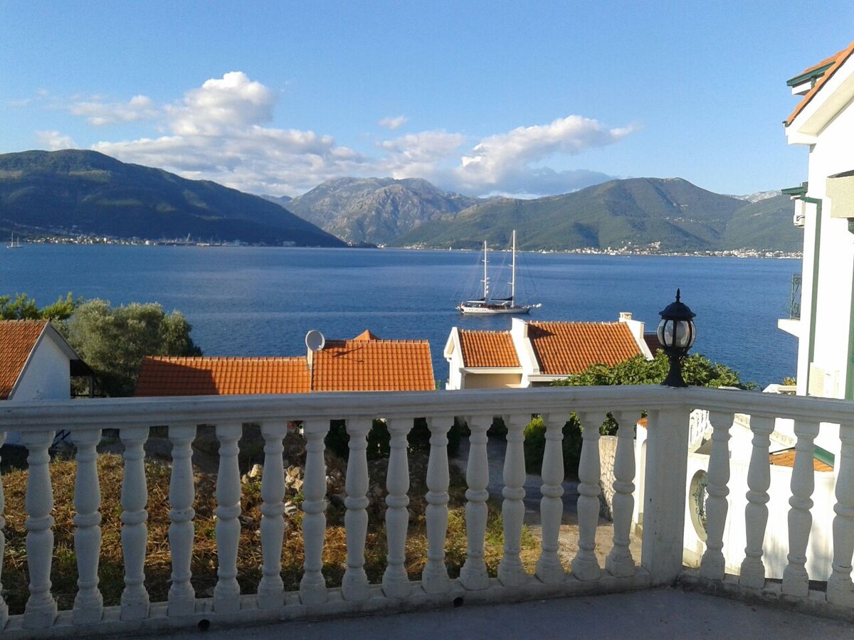 The apartment are located a LITTLE UPHILL so it hawe beautiful views of the entire Bay of Boka and Tivat.Apatmani is new, you hawe garage for car. Apartment will welcome you to my home-grown wine and beer from Montenegro,In the evening on the terrace there is a unique peace of the city noise and a fantastic view of the whole City and Bay,My place is neer to the airport, the beach, and Bus station. You’ll love my place because of the outdoors space and the light and quiet for holiday.WELCOME