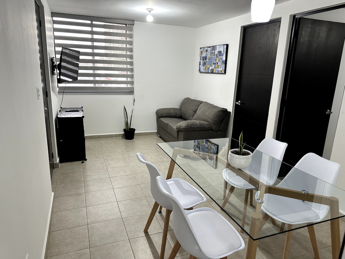 Excelente lugar para alojarte en esta hermosa ciudad de Puebla. ¡No gastes en un hotel! Quédate en este alojamiento que te hará sentir en casa, con las amenidades que puedes disfrutar como lo es: alberca climatizada, Casa Club, GYM, etc.!!