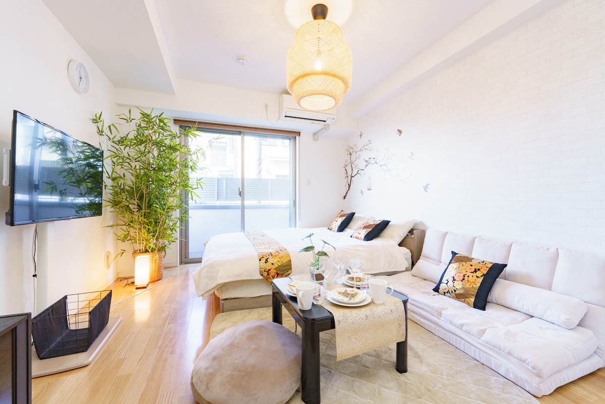 Experience the feel of a standard-sized Tokyo apartment in this deluxe studio for 2. Enjoy restful nights on a queen-sized bed and a functional layout ideal for remote work. Whether you're balancing work and wellness or simply unwinding, this space is a great urban sanctuary.