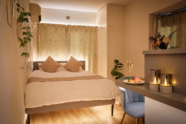 A serene, minimal loft just one stop from Shibuya and Roppongi—perfect for solo travelers or focused remote work. Featuring fast Wi-Fi, an Aeron chair, and a compact double bed (150×210cm)—ideal for one, cozy for two. The glass bathroom and sleek concrete walls give it a modern edge (note: some winter condensation—just run the bathroom fan). While there’s no closet, the space fits four large suitcases and includes a hanging bar and ten wall hooks to keep things tidy.