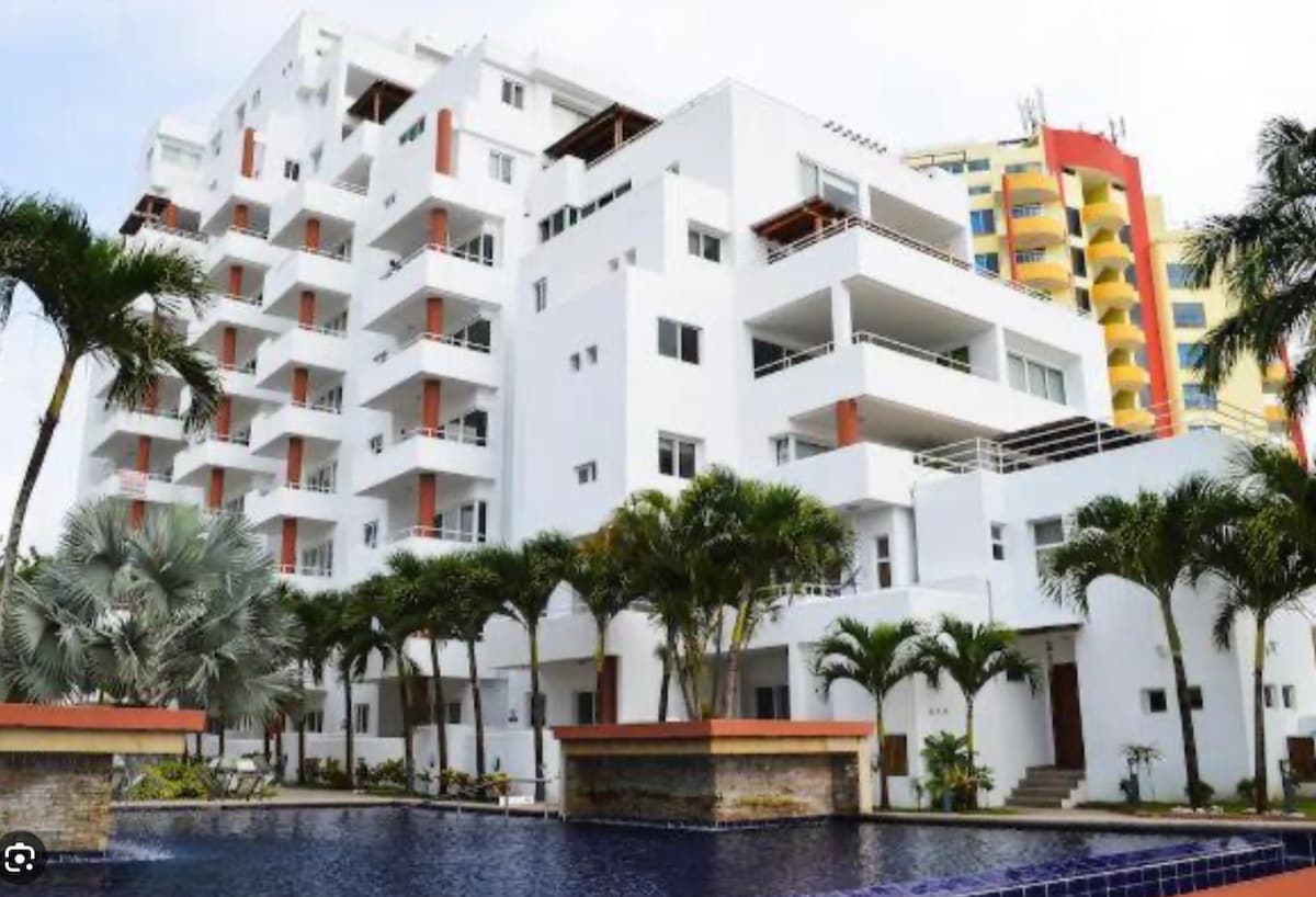 Las fotos hablan por si solas, si buscas algo, aquí lo encuentras todo, vista, tranquilidad, seguridad, consentir a tus seres queridos así como a ti mismo, este es un lugar único en todo sentido, departamento de 2 dormitorios de lujo, 2 baños completos, cocina, comedor , sala y fabulosa terraza con grandiosa vista al mar "en temporada se puede avistar a ballenas". Contamos con instalaciones completas como 2 piscinas para adultos y niños, playa privada, cancha de tenis, básquet, restaurante, etc
