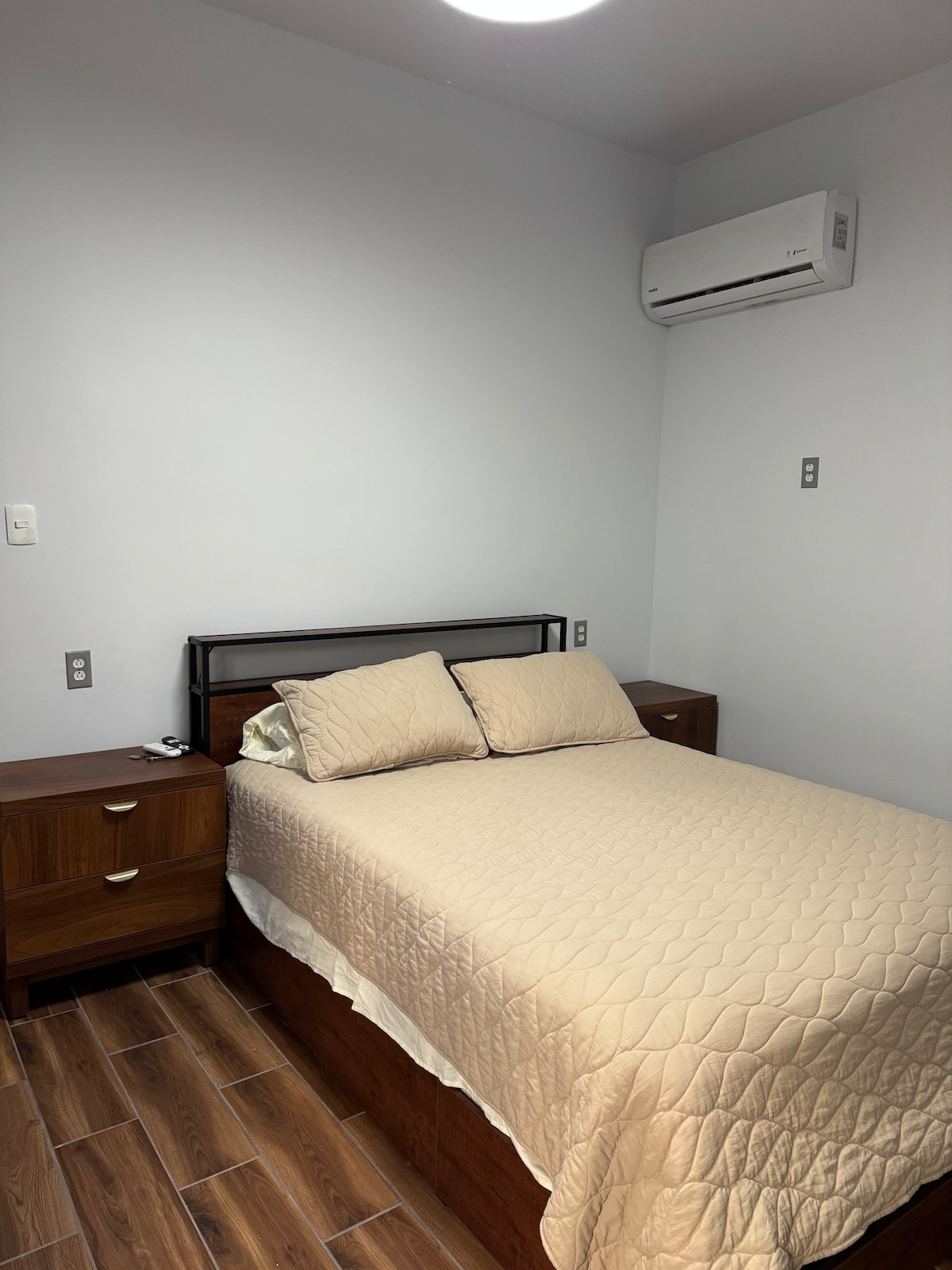 Relájate en este espacio tranquilo y elegante. Disfruta de un departamento totalmente equipado y NUEVO. Pantalla de 70” en el área social y de 55” en los cuartos. Amplios baños, clósets, lavandería, camas queen, minisplit’s en todas la áreas, cocina equipada, acceso a roof top con vista panorámica. Combinamos el buen gusto y modernidad con el comfort. Cerca de restaurantes y súper mercados. Disfruta tu estancia en nuestro departamento diseñado para satisfacer tus necesidades.