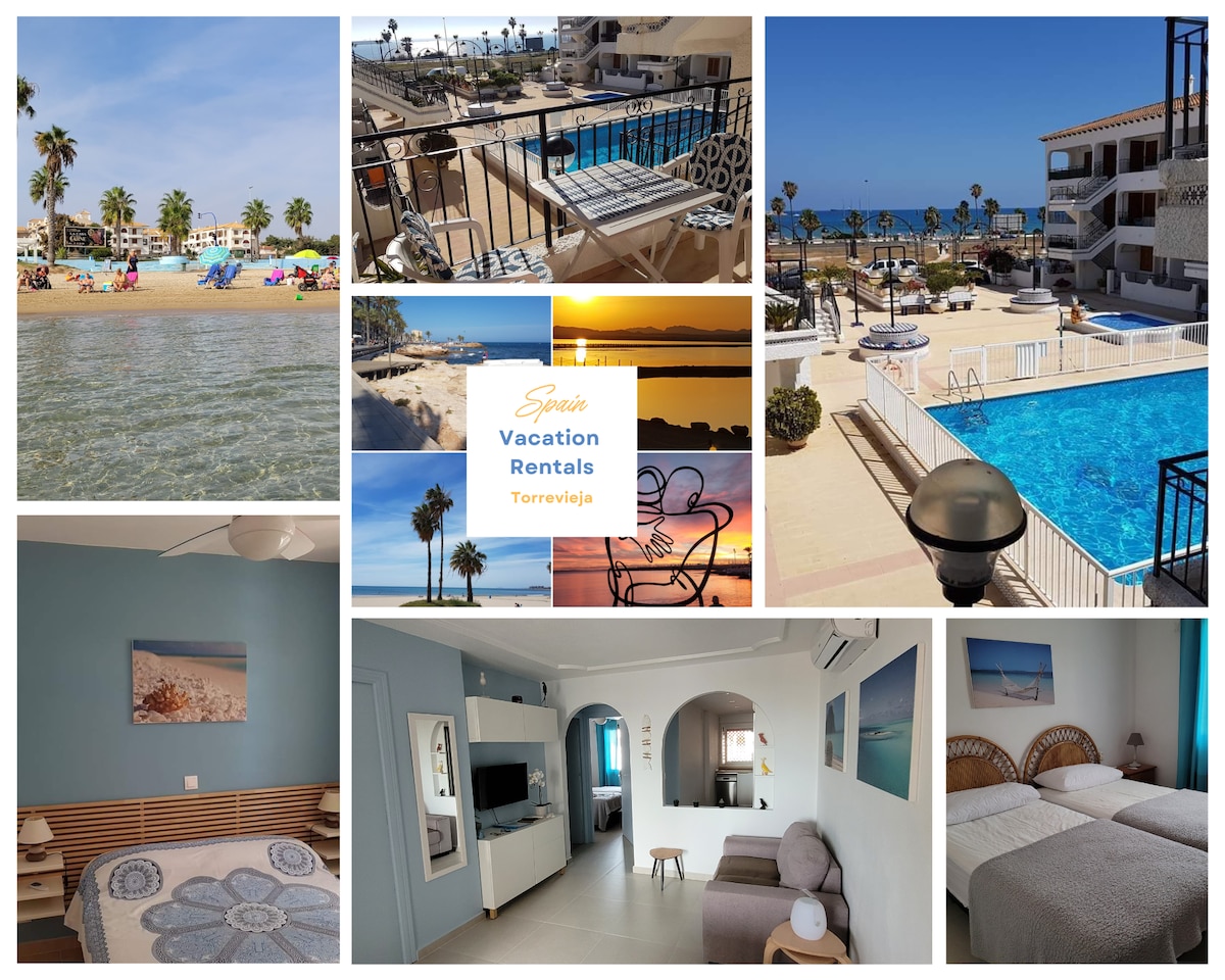 L'appartement est vue mer et face à l'une des plus belles plage de sable fin de Torrevieja. La résidence possède une piscine sécurisée ouverte toute l'année Vous trouverez à votre arrivée tout le confort de notre résidence familiale . Elle peut accueillir jusqu'à 5 personnes. L'appartement est équipé avec internet fibre haut débit en libre service. Les commerces sont à proximité. Le centre ville historique à 20mn a pied. L'aéroport international d'Alicante à 40mn.