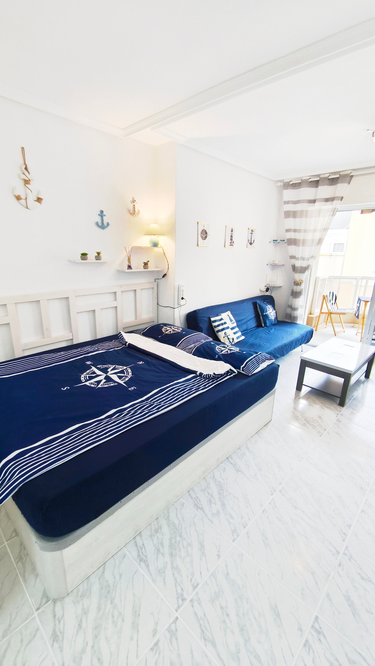 Completely renovated seaside apartment with 2 bedrooms, 2 bathrooms and a nice balcony with a dining corner and sun loungers. Just a few meters from the sandy beach of Punta Prima, the apartment is located in a very quiet and relaxing location, next to a promenade and a coastal path that connects it to the neighboring city of Torrevieja. It is very close to many quality restaurants and shopping areas, just a few minutes walk away.