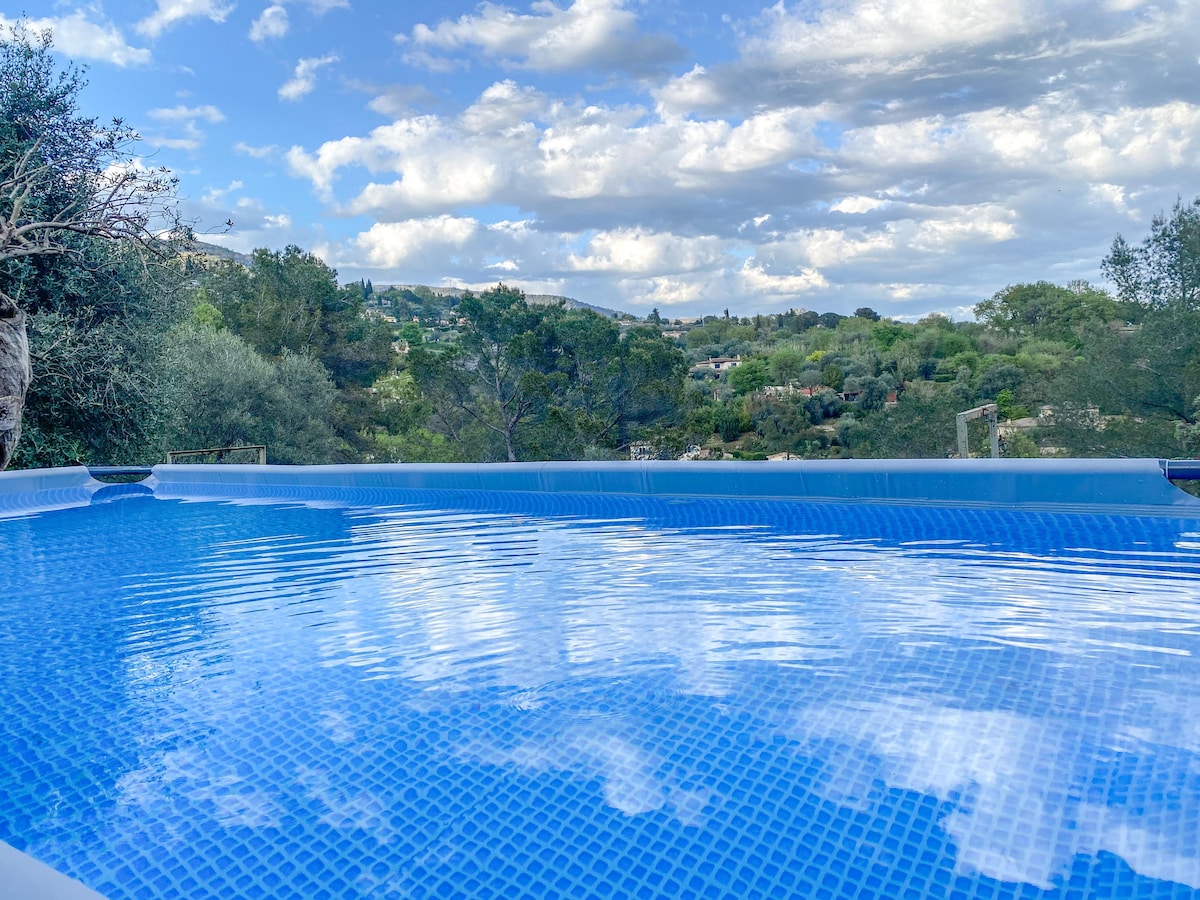 Petit STUDIO très bien équipée avec entrée et parking privé dans une grande Propriété avec piscine et jacuzzi chauffés du 15 avril au 30 octobre . La piscine extérieur et jacuzzi ainsi que le jardin sont partagés mais assez grand pour profiter chacun son espace de tranquillité . Je vis dans la bastide principale . Un Havre de Paix entouré d oliviers centenaires . A 35 minutes de l aéroport de Nice et divers villages provençaux et 14km de Cannes . Tele grand écran /abonnement Netflix