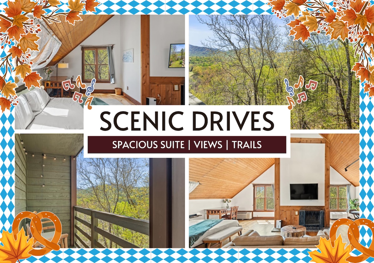 ★ “Twilight Ridge was the most peaceful place I’ve stayed. We watched the stars through the skylights and had coffee on the balcony—it was perfect.” ★ Twilight Ridge is your personal pocket of peace in the Smoky Mountains. This spacious suite blends mountain charm with modern comfort—skylights above the bed, a cozy sofa nook, and a private balcony with forest views—plus complimentary breakfast each morning.