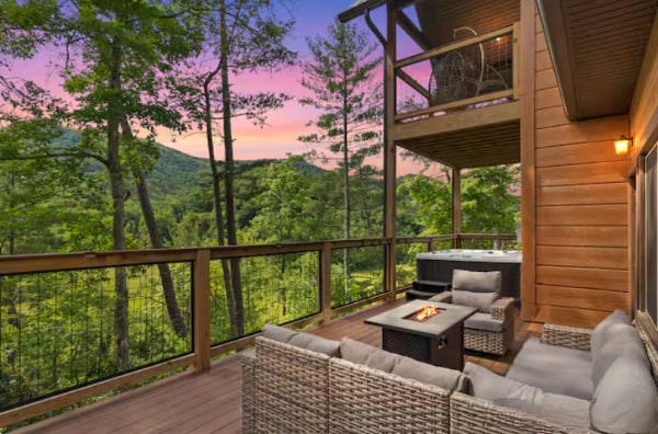 Private culdesac & oasis for 2 convenient to all of the attraction in Pigeon Forge, Wear’s Valley, Gatlinburg and the Great Smoky Mountain National Park. Perfect little honeymoon cabin, updated oversized shower, hot tub, and updated kitchen. Bring your own firewood October 1-April 1 and enjoy your own cozy slice of the mountains! Amazing screened-in porch with an EcoSpa hot tub and back covered deck with rocking chairs. Small seasonal Mountain View’s can be seen from the porch.
