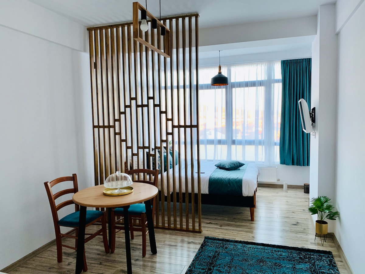 Petreceți-vă sejurul într-un apartament de tip loft, modern, ultracentral, situat fix în inima Brașovului. Acest spațiu elegant cu pereți înalți oferă confort și stil, perfect pentru o ședere relaxantă. Dotat cu toate facilitățile moderne, și lumină naturală din abundență, vei fi la doar câțiva pași de principalele atracții turistice din Centrul Brașovului: restaurante, cafenele, muzee. Ideal pentru cupluri sau călători de afaceri, pentru o experiență de neuitat la Orașul de la poalele Tâmpei.
