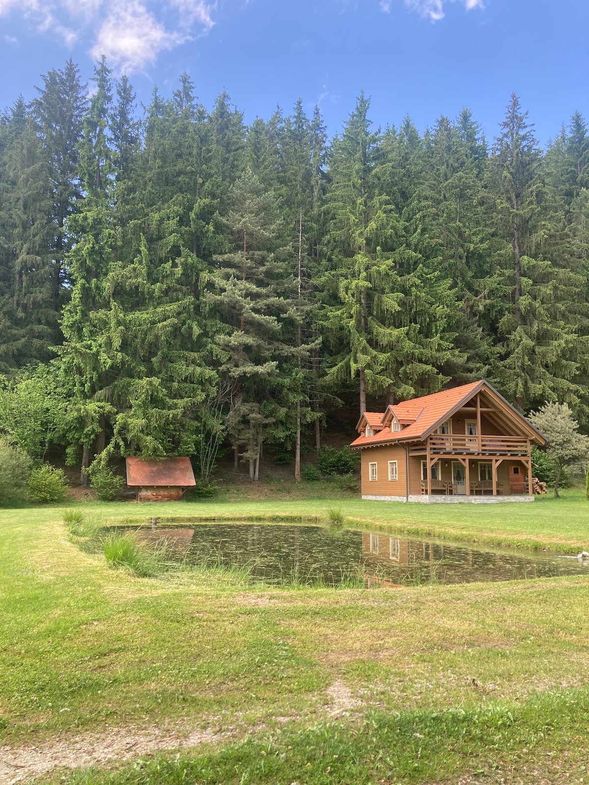 O cabană in vârf de munte, cu lac (nu se practică pescuitul), spatiu de joacă pentru copii, izvoare reci, brazi, la cota 1100m, dar și două dormitoare, dintre care unul tip open space, un living generos, o bucătărie complet utilată, o baie spațioasă, un jacuzzi pentru relaxare și sufletul nostru pe tavă.