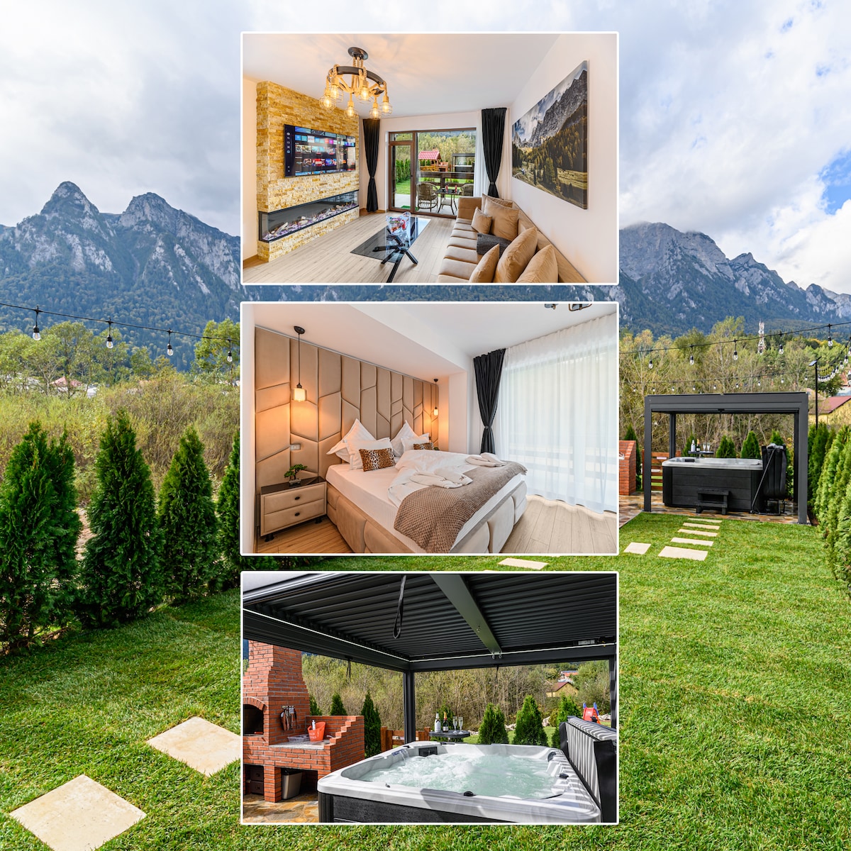 Escape the hustle and immerse in a weekend retreat that redefines bliss. Your holiday home, a luxurious cabin by the river and forest, seamlessly blends Nordic style with mountain vibes. Crafted from rough-cut timber, it boasts a chimney, hot tub, and panoramic views of the second-highest peak in the Fagaras Mountains. A perfect fusion of comfort and nature awaits.