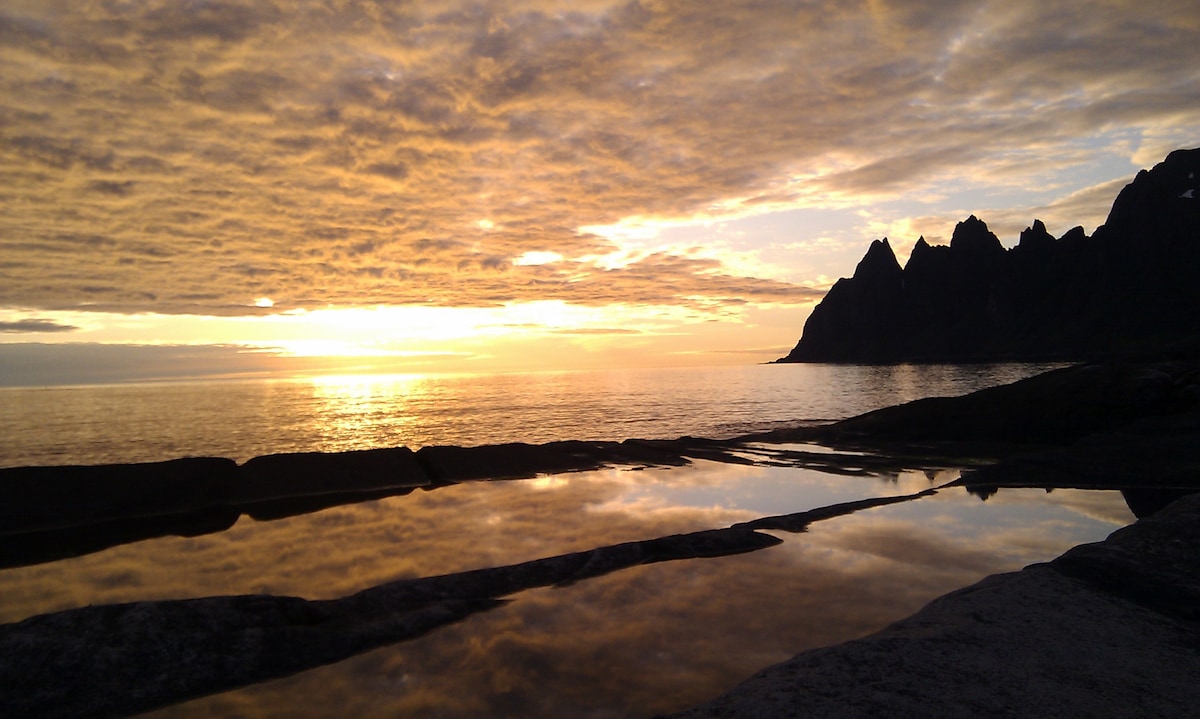 Enjoy the midnight sun or the northen lights. Above all, we want you to have a very good stay. That's why we offer you free rental of bicycles, snowshoes, canoes, firewood, barbecues and kayak for those with experience. The apartment is on the first floor and has large windows. It is in the nature surrounded by the ocean, white coral beaches, islets and reefs, you can see this trough the apartment windows. Park right outsidee and indside you really have everything you might need.