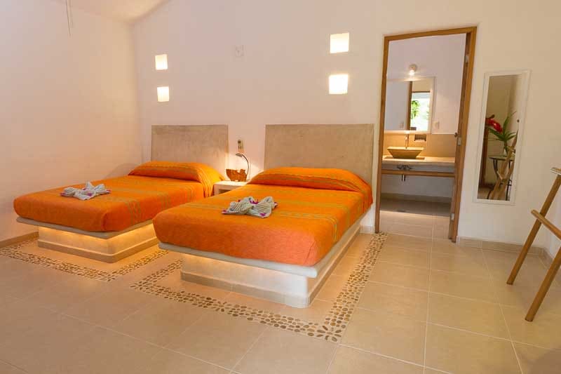 Vive una experiencia única en La Saladita en nuestras exclusivas habitaciones con Vista al mar, un refugio acogedor diseñado para relajarte y conectar con la naturaleza. Cada una de las 6 cabañas cuenta con: Baño exterior privado, que combina privacidad y un toque de naturaleza. Pequeño patio privado con vistas directas a la alberca, ideal para disfrutar del ambiente sereno y refrescante.