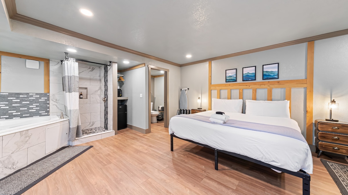 全新加大双人床,带按摩浴缸!入住Stateline